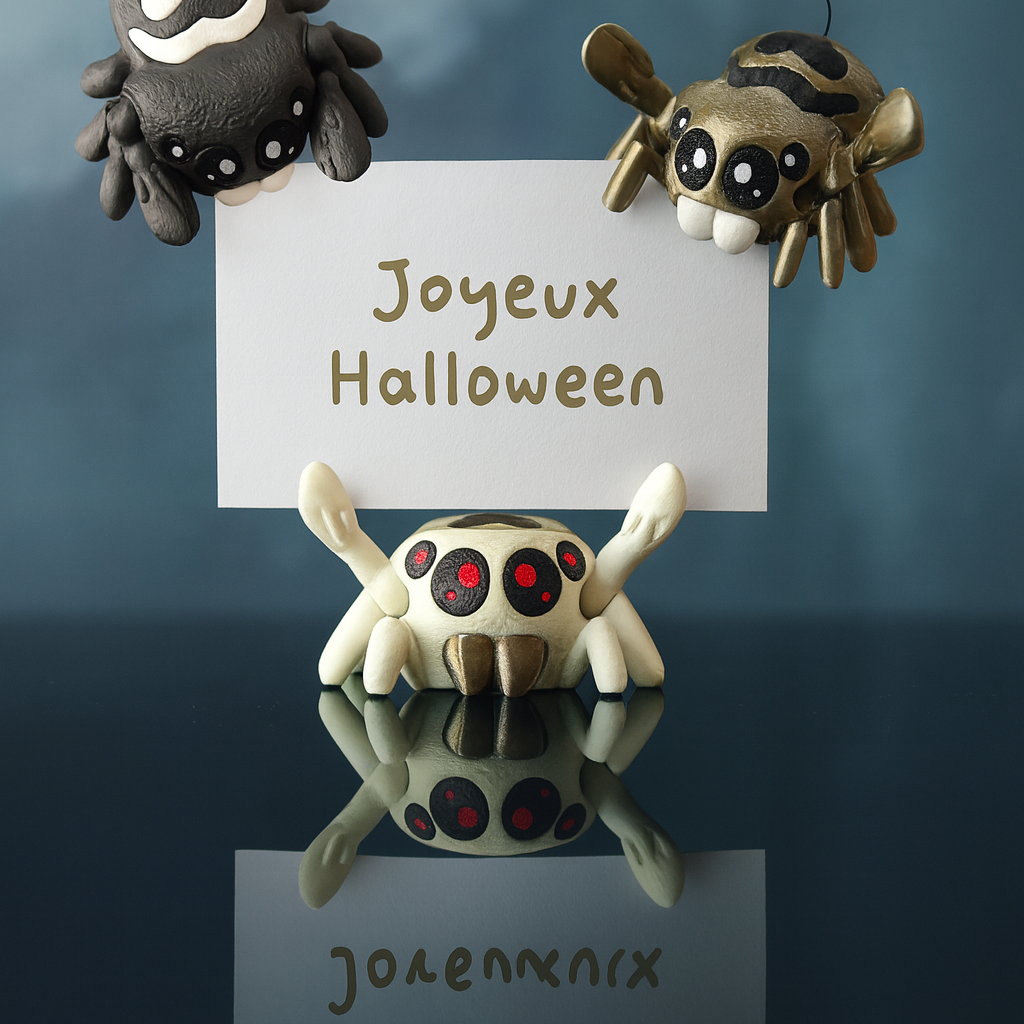 Voici Mimie , l'araignée à la fois adorable et une peu effrayante qui adore tenir vos notes, photos ou petits souvenirs. Pratique et amusante, elle apporte une touche ludique et originale à votre bureau ou à votre réfrigérateur. Son design unique en fait un compagnon surprenant que vous adorerez exposer !